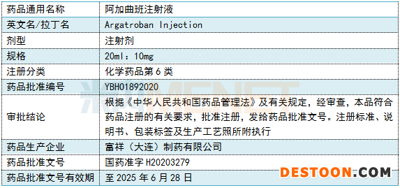 7月6日,富祥藥業(yè)(江西富祥藥業(yè)股份有限公司)發(fā)布公告稱,其控股子公司獲得國家藥監(jiān)局核準簽發(fā)的阿加曲班注射液的《藥品注冊批件》。米內網數據顯示,2019年中國公立醫(yī)療機構終端阿加曲班注射液銷售額超過5億元。