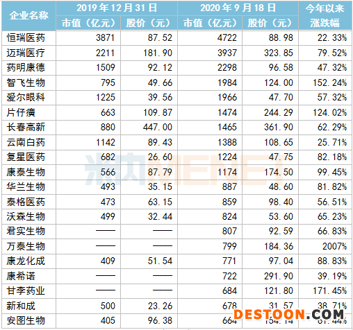 2017年11月,恒瑞醫(yī)藥成為首只市值超2000億元的醫(yī)藥股;2018年6月,市值突破3000億元;2019年10月,市值沖破4000億元;今年6月,市值再創(chuàng)新高突破5000億大關(guān),穩(wěn)坐“醫(yī)藥股一哥”寶座。而近期A股市場各板塊出現(xiàn)不同程度的回調(diào),截至9月18日收盤,恒瑞醫(yī)藥市值回落至4722億元,今年以來漲幅超20%。