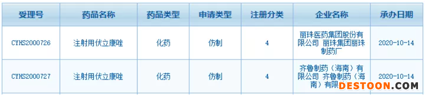 圖1:麗珠、齊魯申報的注射用伏立康唑注冊情況